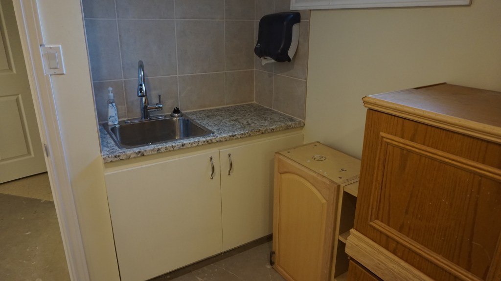 | 2021 | Repaired the damaged floor joists and repaired the floors in the main floor foyer and washroom. Widened existing doorway to make it handicap accessible, removed old bathroom fixtures, gutted the old lathe and plaster washroom walls and ceiling, installed new insulation, plumbing and fixtures, low maintenance wall coverings, drop ceiling, LED lighting, and commercial flooring. |