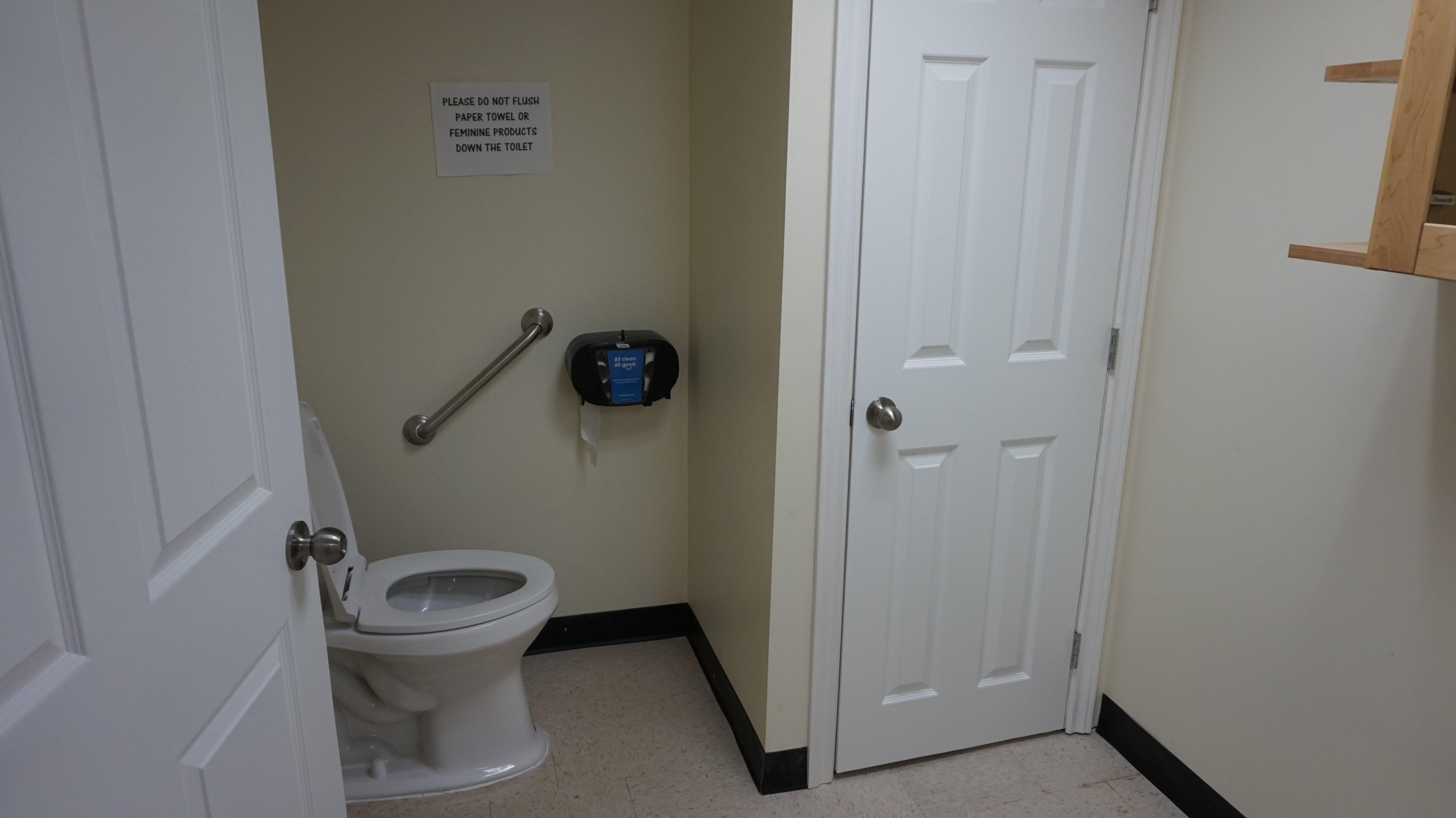 | 2021 | Repaired the damaged floor joists and repaired the floors in the main floor foyer and washroom. Widened existing doorway to make it handicap accessible, removed old bathroom fixtures, gutted the old lathe and plaster washroom walls and ceiling, installed new insulation, plumbing and fixtures, low maintenance wall coverings, drop ceiling, LED lighting, and commercial flooring. |