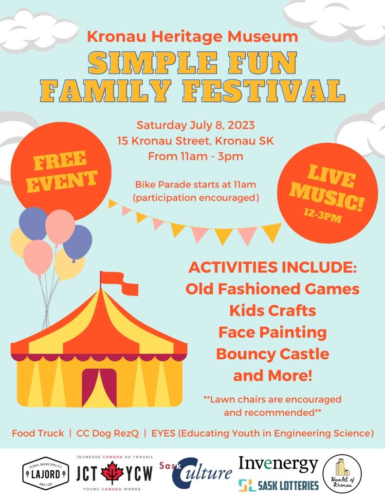 We started off July with a bang after hosting our annual Simple Fun Family Festival on July 8th. We had an amazing turn out kicking off the festival with the bike parade followed by stunning performances by Ken Mair and Vasco D’Almeida with their live music as well as some added fun from EYES (U of R Educating Youth in Engineering & Science) and CC RezQ’s. There was a BINGO scavenger hunt, face painting, outdoor games and a bouncy castle kindly provided by KADER Kronau Fire and Rescue for all to enjoy. If anyone was feeling hungry The Smokin’ Cheese Lady and Pro Barbecue were also in attendance with their delicious goods. We couldn’t have pulled this off without our wonderful volunteers, supporters and visitors so a big thank you to all who participated in the event.