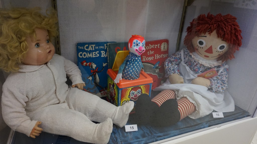 Our rotating exhibit is “Simple Fun,” a fun showcase of different games, toys, and other forms of entertainment throughout the ages. Keep scrolling for a virtual tour of what we have on display.