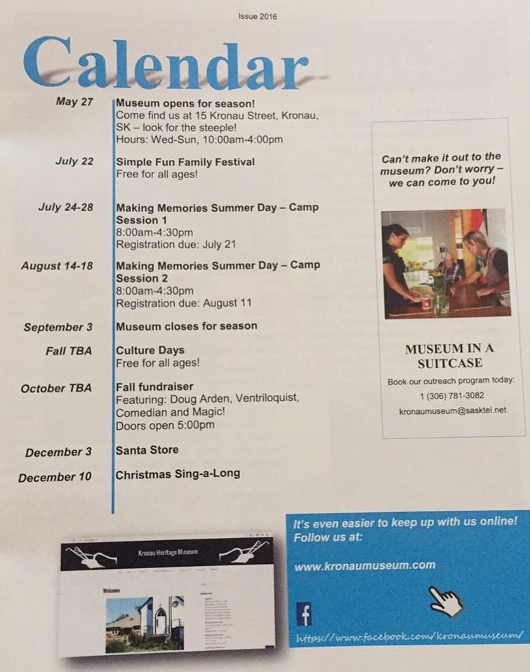 Welcome back the Kronau museum’s busy season is upon us! Make sure to come out and visit our fantastic new summer students Allen and Jil.