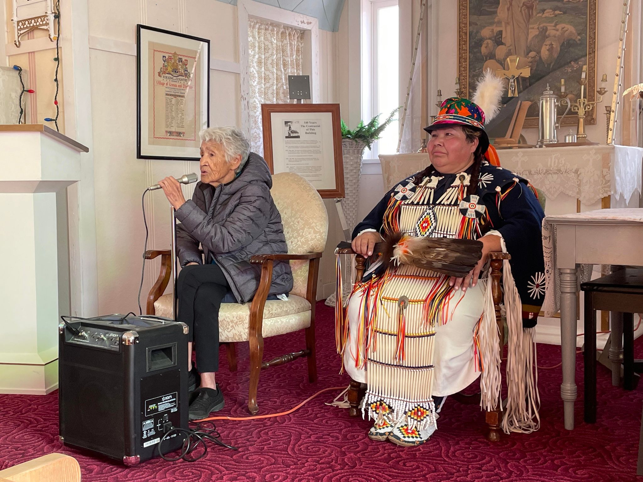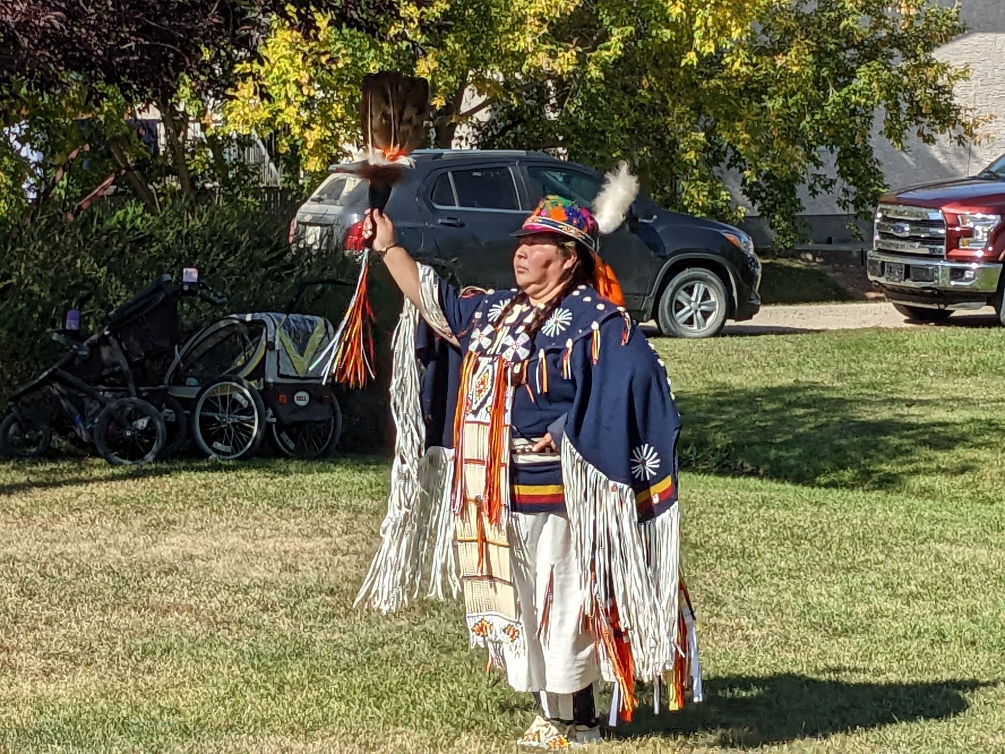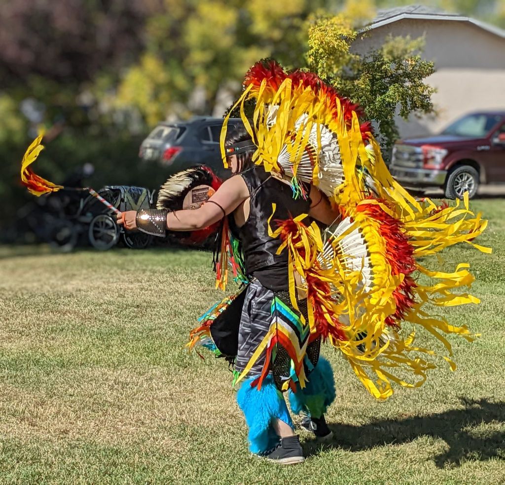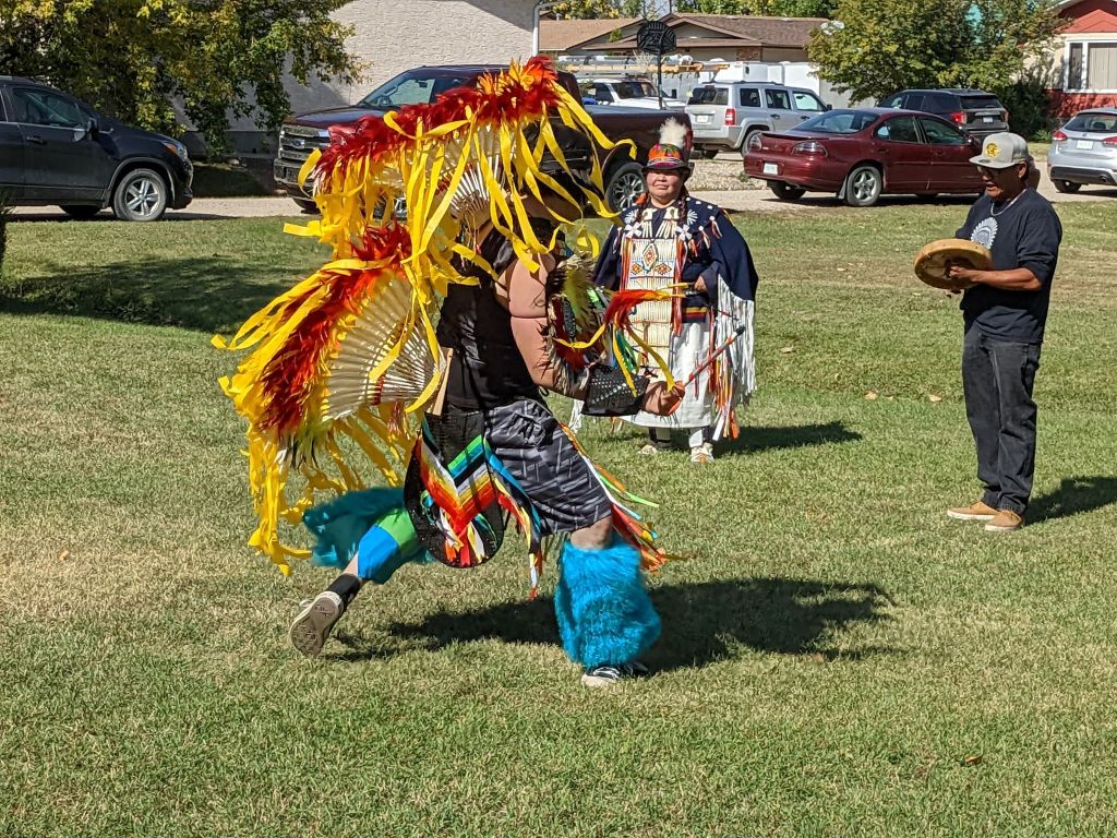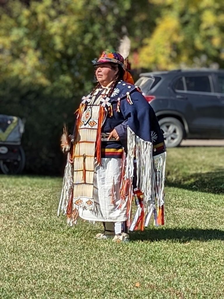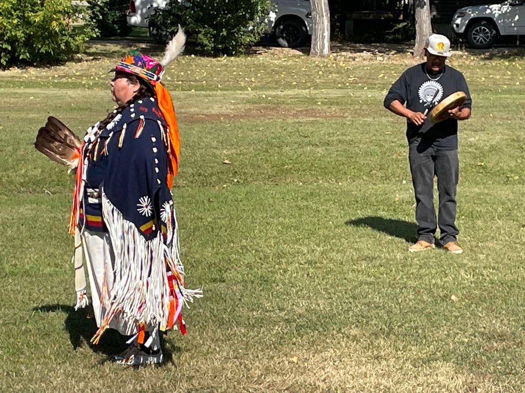 It was obvious that the people who attended the event were engaged in listening to the details of the history and traditions for the elaborate regalia of the dancers and the explanation of the movements of the dance and the sounds of the drum. The first-hand account of the life of a seven-year-old little girl in a residential school by Edna Brass, an Elder with the Kawacatoose First Nation was not only enlightening but very sad. This was probably the first time many had heard firsthand what little children experienced when they were taken from their homes and placed in schools where they did not understand the language, what was happening and what was expected of them.