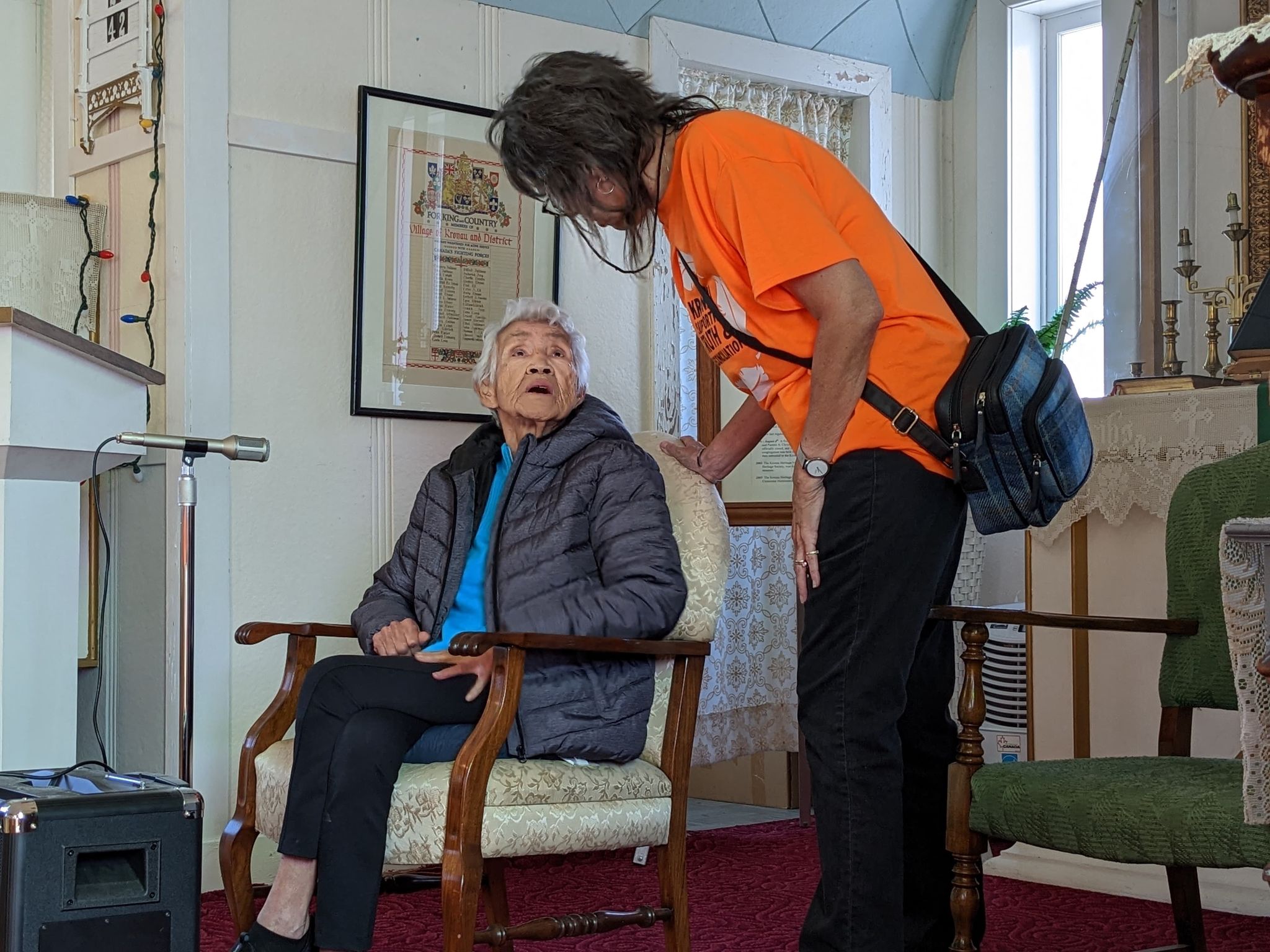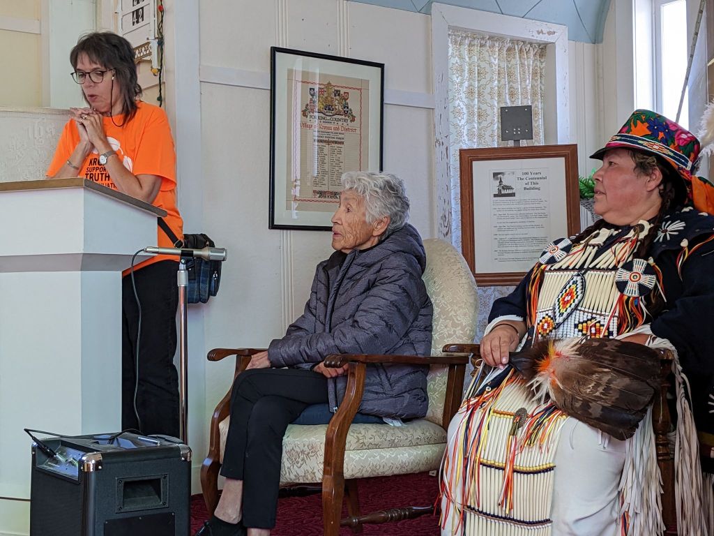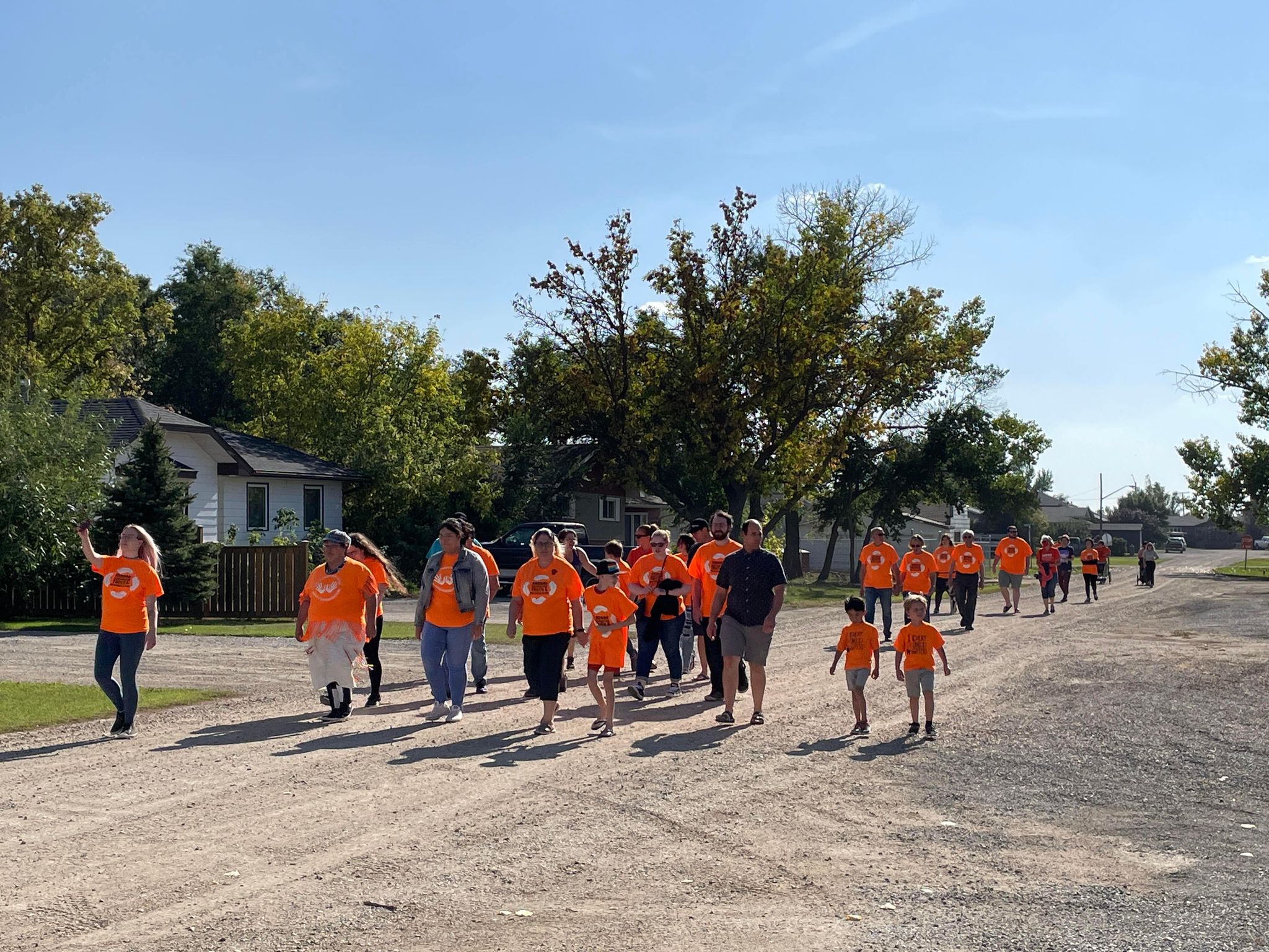 There were a very creditable number of orange shirts visible on the walk around the town and it drew interest from those watching from their yards or in their windows as the walk passed by on their street as well. You could sense the beginning of a developing understanding on both sides as everyone sat down together in the school at the end of the walk to enjoy the lunch of Bannock, coffee, iced tea and juice.